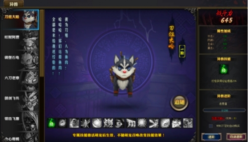 ● 异兽拥有技能,异兽技能可提高玩家的经验获得,铜钱获得等