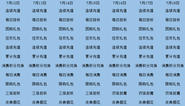 限制:活动日期内,如果服务器开服时间没超过7天,则暂时不参与这一套运营活动;