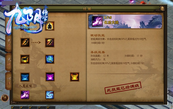 在特玩游戏九阴绝学当角色入魔之后,会得到两个被动的入魔技能:化功大法和九幽寒霜诀。而且随着技能等级的不断提升,效果更加出色。