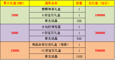 3、玩家活动期间累计充值在10000元以上(包括10000元),可领取全部档次奖励!