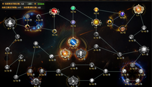 万象神尊是唯一一个反弹伤害的技能,而且是反弹全部伤害并且恢复自身生命。这个技能其实是专门为以弱胜强打造的。在战斗力与对方差距较大时,技能触发后可以扭转败局。从灵御出发到万象神尊一路上各种属性都有加到,包括星术、武力、护甲、生命等等,最终达到万象神尊技能。走这条线可以给玩家带来一个比较平衡的属性提升,提高生存几率。从武力出发,到达万象神尊一路上则注重对目标的伤害,包括穿甲、命中、体力、攻击、武力和最大生命值提升恢复生命值技能,可以说是为PVP专门打造的一条线路,不过也是消耗天赋点最多的一条线。价值很高,但是代价也很大。