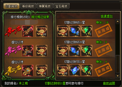 2.想要参与切割竞技的排名奖励的话,充值还是要有的,新服会开启诸多的充值消费获得,玩家参与后可以获得一些元宝,不多,但是也不少。切割竞技的阶段奖励也会获得一定的元宝。