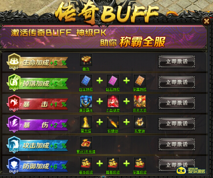 防御加成6%BUFF:参与豪华投资、尊贵投资和至尊投资后可激活