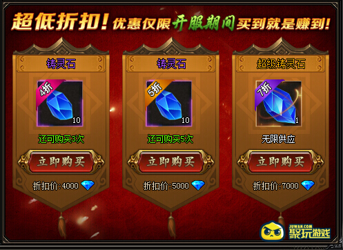 5折:5000钻石购买铸灵石*10,限购5次