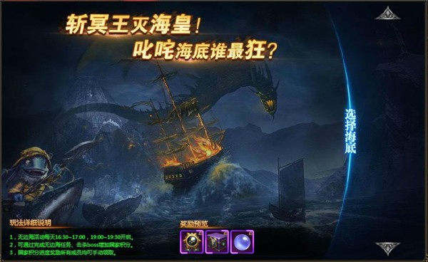 4. 无边海活动的BOSS归属于最后一击的玩家,抢到boss归属并击杀boss之后会有归属掉落。