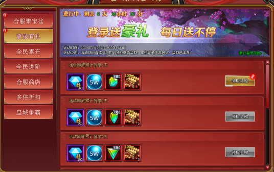 活动期间连续登录即可领取豪华奖励,累积登录天数越多,奖励越丰厚。