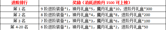 活动期间使用任意进阶系统的进阶石,总数量每达到500即可获得一次抽奖机会,数量达到1500以上即可参与排名奖励,活动每日零点重置,排名将在23:55结算,请勿在活动即将结束时冲榜,奖励通过邮件形式发放。