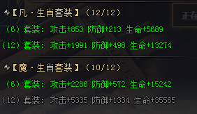 每件生肖装备都会带有三大基础属性中的两个,每集齐6件、12件都会附加套装属性。