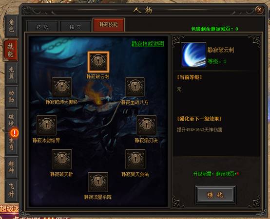 技能系统内新增静寂技能页签: