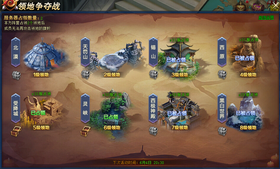 17.活动结束后,本服占有的领地,可开始领取每日奖励,直到下次活动开启日(每日0点重置)