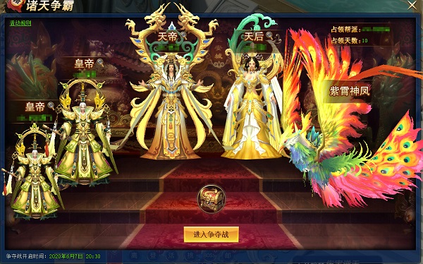 特玩网页游戏七战开服一周后,每周日的晚上20:30-20:50开启诸天争霸活动,只有本服的皇盟成员或者当前的神国天帝帮派才能参加。