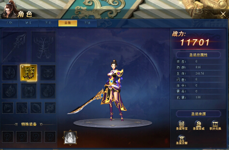 圣装来源:圣装寻宝、圣装合成、积分兑换、圣装分解