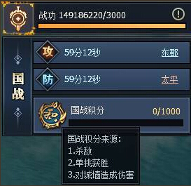 国 战:当世界地图上的洛阳皇城被任意一国占领后,三国进入纷乱的国战时期。国战每天定时10点、15点、20点开启,每个国家都会接到相应的国战任务。顺利完成任务的国家能获得大量的奖励。