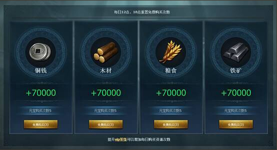6. 辎重站能提供免费购买资源次数,玩家通过辎重站能获得大量的资源。