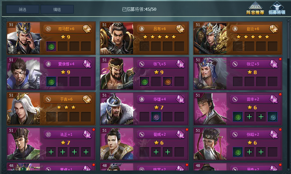 2.将领资质:将领资质越高,将领拥有的三维属性则越高,同时也代表将领的珍稀度越高,是需要主要培养的将领。