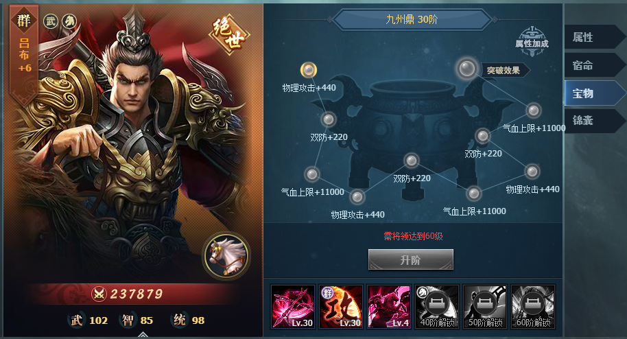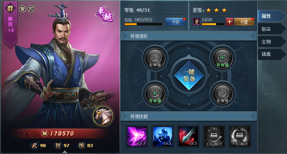 宝物升阶可以解锁对应技能,后期技能不断升级,将领战斗力将会得到全面提升