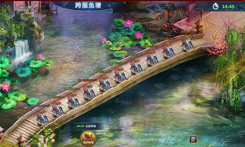 钓鱼过程中,每隔2-3分钟就会钓上一条鱼,旁边还会坐一排跨服的各个玩家,当玩家手上持有两条鱼及以上时,就可以抢夺,比的就是战力高低了,所以此时人如果不在电脑前,是自动挂机的话,很容易被别人把鱼抢走哦!钓鱼活动结束后会结算积分最高的服务器及玩家,最后按照排名发放元宝奖励。
