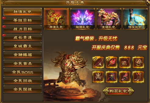 超值礼包可消耗一定元宝进行购买,获得珍稀道具