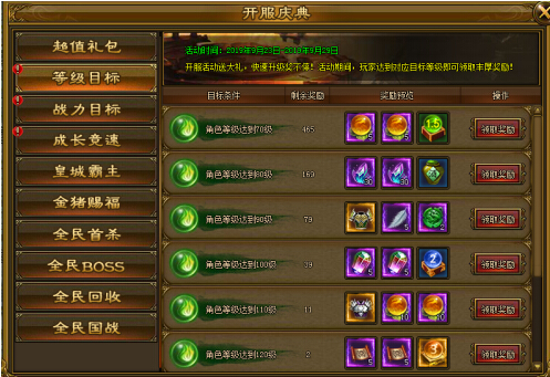 开服活动内,达到一定等级可领取限量奖励。
