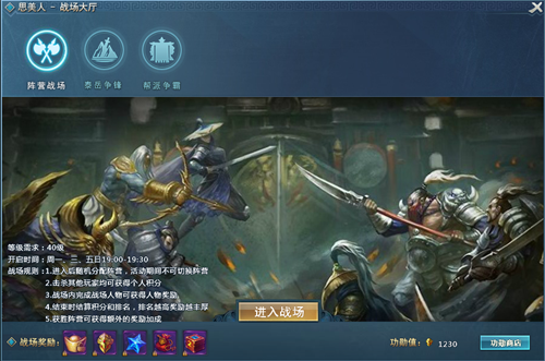 一、 玩家等级达到50级后,就可以参加阵营战场,与不同的玩家进行PK较量