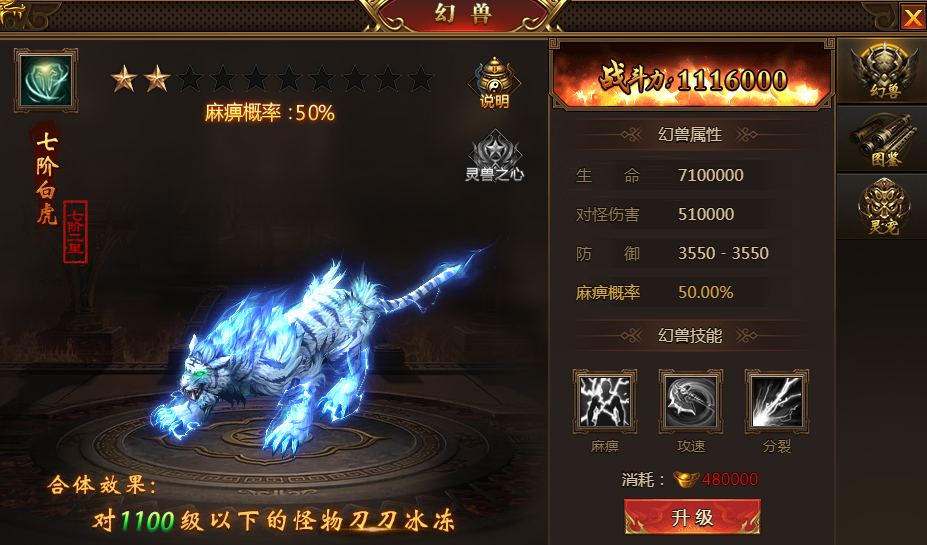 3. 升级幻兽增加人物斩杀伤害和冰冻神技