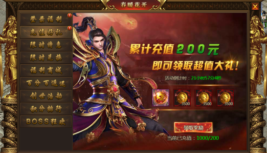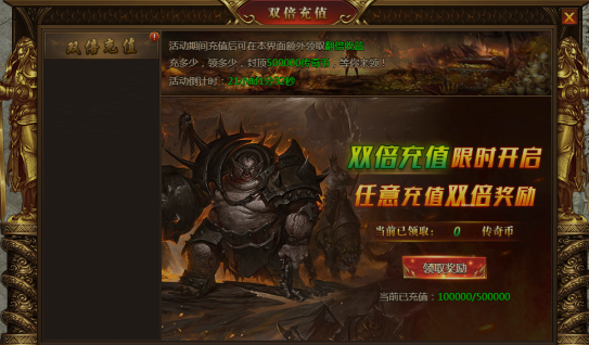 1.活动期间充值可在活动页面领取与充值金额等值的传奇币奖励