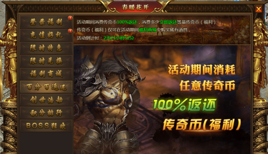 活动内容:活动期间可消耗传奇币(福利)购买稀有道具,消耗传奇币100%返还传奇币(福利)