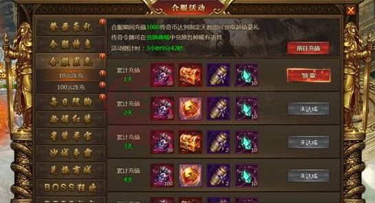 合服1-7天玩家充值10元和100元档次达到指定天数即可领取超值豪礼