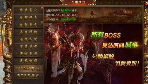 合服期间所有BOSS的复活时间减半(跨服BOSS不计算在内)