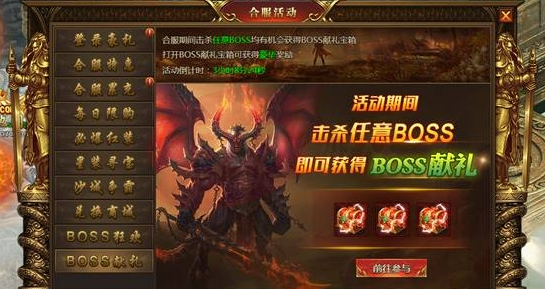 合服期间击杀所有BOSS均有机会获得BOSS献礼礼盒,打开后可获得稀有奖励