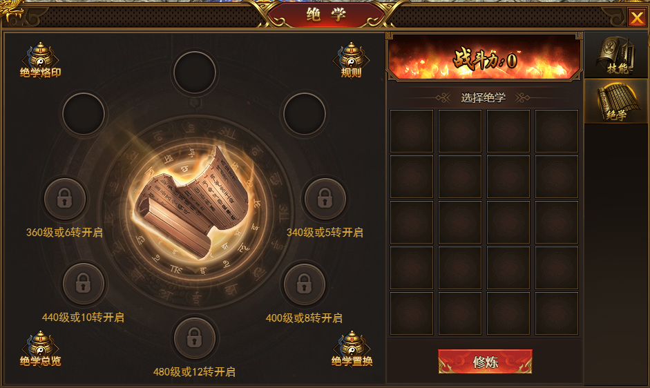2、绝学槽的开启需要角色提升转生等级