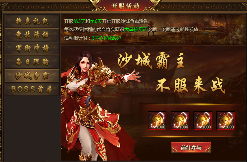 1、活动期间,参与的沙城内成员5秒会获得一次积分奖励,指定目标积分可换取相应的积分礼包