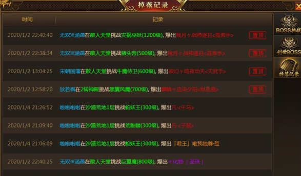 4. 玩家爆出的稀有装备会在掉落记录界面展示