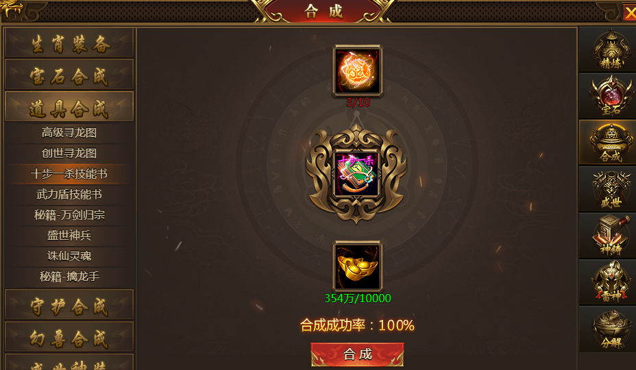 千锤百炼为宝石,类似爬塔,涅盘三级拥有复活,所以当打死一层,可以选择回城加血,再继续打。开孔石商城购买,每天限购3个,元宝购买,从开服第一天就开始买。