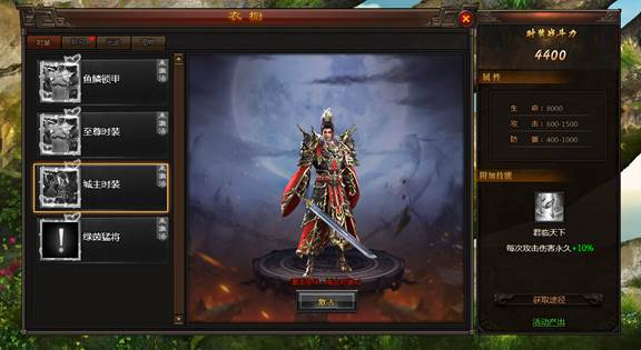 人靠衣装马靠鞍,一副帅气的装扮让您的魅力提升百倍,迷倒万千少女。还有大量属性加成,拥有魅力的同时还提升了实力。更有特殊时装!有些特殊的时装可以通过参加活动获得,也可以通过VIP获得。