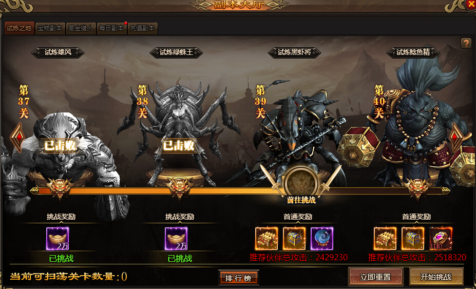 1.试炼之地只有等级限制,达到等级后都可挑战;