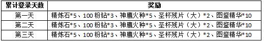 【活动内容】合服开服之后,玩家每日登录都可领取丰富的奖励,直至累计登录3天,共可领取3次奖励
