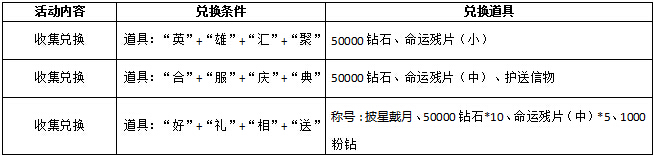 【活动内容】活动期间玩家角色击杀120级以上野怪即可随机掉落合服庆典收集道具,收集相应一套道具即可在合服庆典的收集兑换分页兑换奖励。