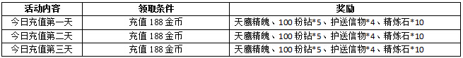 【活动内容】合服开服后3天内,每日充值188金币,即可每日领取合服大礼包!3天充3次,领取3次。