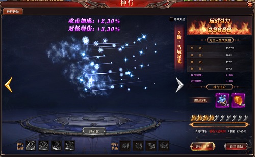 神行系统还可以穿戴神行装备,神行装备有莲步、焚星、玄魂、星轨。神仙装备可以通过活动获得。