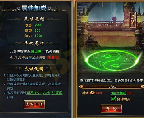 太包罗了世物万象,而特玩网游天书世界游戏里太系统则是角色强大的实力来源,除了攻击防御这些基础属性加成外,还有整个天书里角色在PK中出其不意的反杀技--反伤属性,你可以想像在被逼入绝境时力挽狂澜,反弹全部伤害是何其强大的技能。想必大家已经很想知道天书怎么快速提升太极,下面这就来与大家分享。