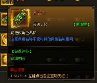 使用可更改角色名称,等级达到60级才能使用。