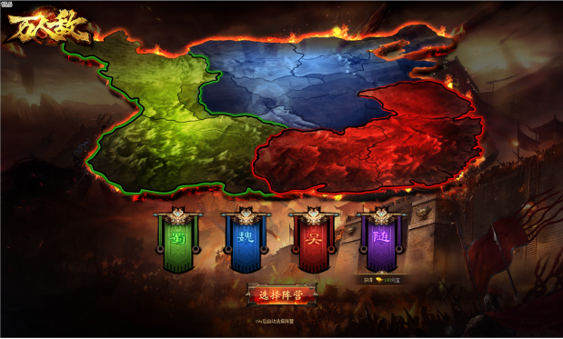 通过三国时期的魏、吴、蜀三个国家,将玩家阵营划分为三个国家势力。
