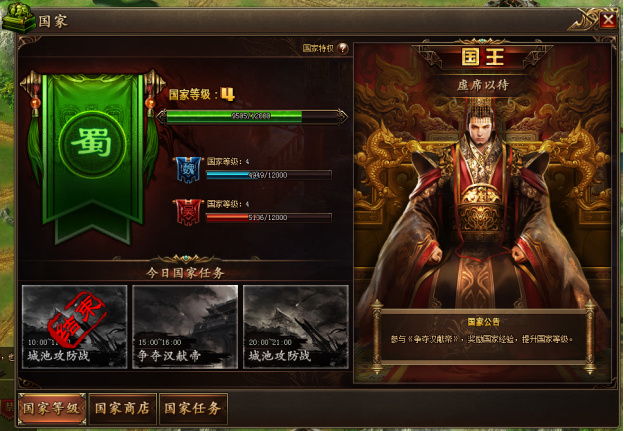 国家等级是每个国家势力重要养成方式,通过提升本国国家等级,能够获得更多的国家特权。