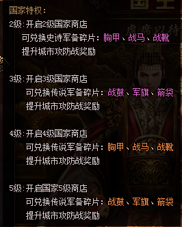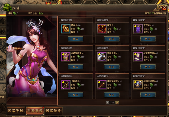 国家商店用途:玩家可使用贡献度,在国家商店内购买各种商品。