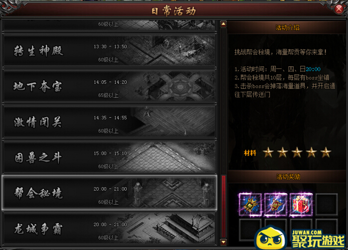 活动入口:帮会界面帮会活动页签