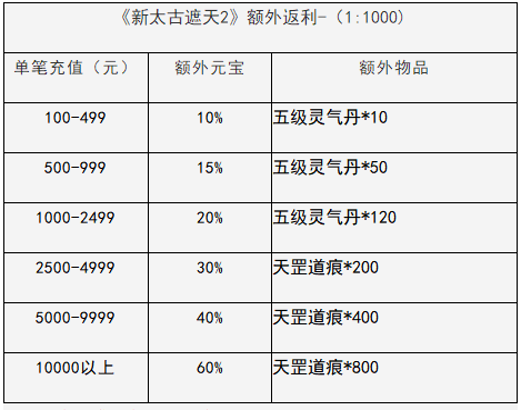 1、 活动期间内单笔充值大于:500元的大侠都能额外获得50w元宝+攻击龙晶*1(活动期间每个账号仅限一次,联系客服领取)