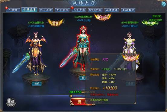 仙界至尊共提供三个职位供大家抢夺,玩家不用担心占了职位的玩家战力太高而打不过,每次挑战都是挑战系统角色,所以即使玩家战力初期飙得很高,也是非常容易会被抢走头衔的,每被挑战成功一次,职位加成的战力属性会提升一些,而下一次出现的系统角色也会随之变强一些。