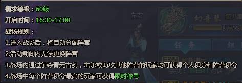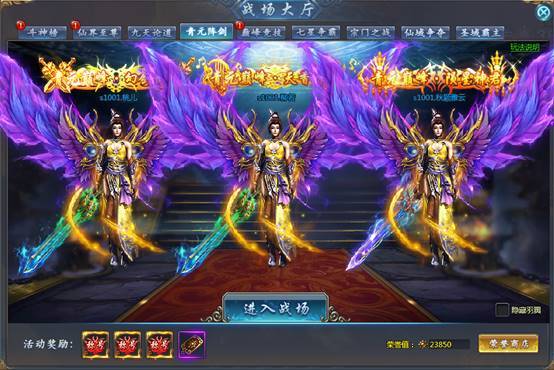 青元剑阵是单服PVP活动,进入该活动的玩家将会被随机分配到三方阵营,共同对青元剑阵发起攻击,青元剑阵被击败后将会散落一地的宝箱,可开出宝石、强化石、精炼材料等道具资源,最好是大家捡完宝箱再进行互殴吧,不要趁人家开宝箱的时候一直杀,小编就曾引起公愤,然后被一群人围追堵截,弄得生活无法自理T T