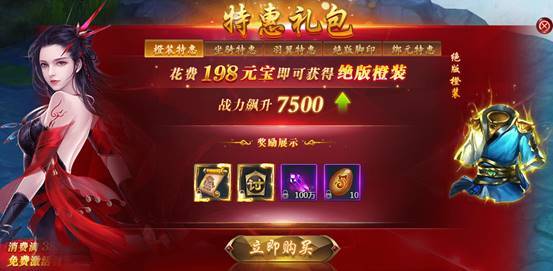 开服第三天开启,推荐全部购买,可额外获得多种道具,最主要可获得橙色魂石礼包。